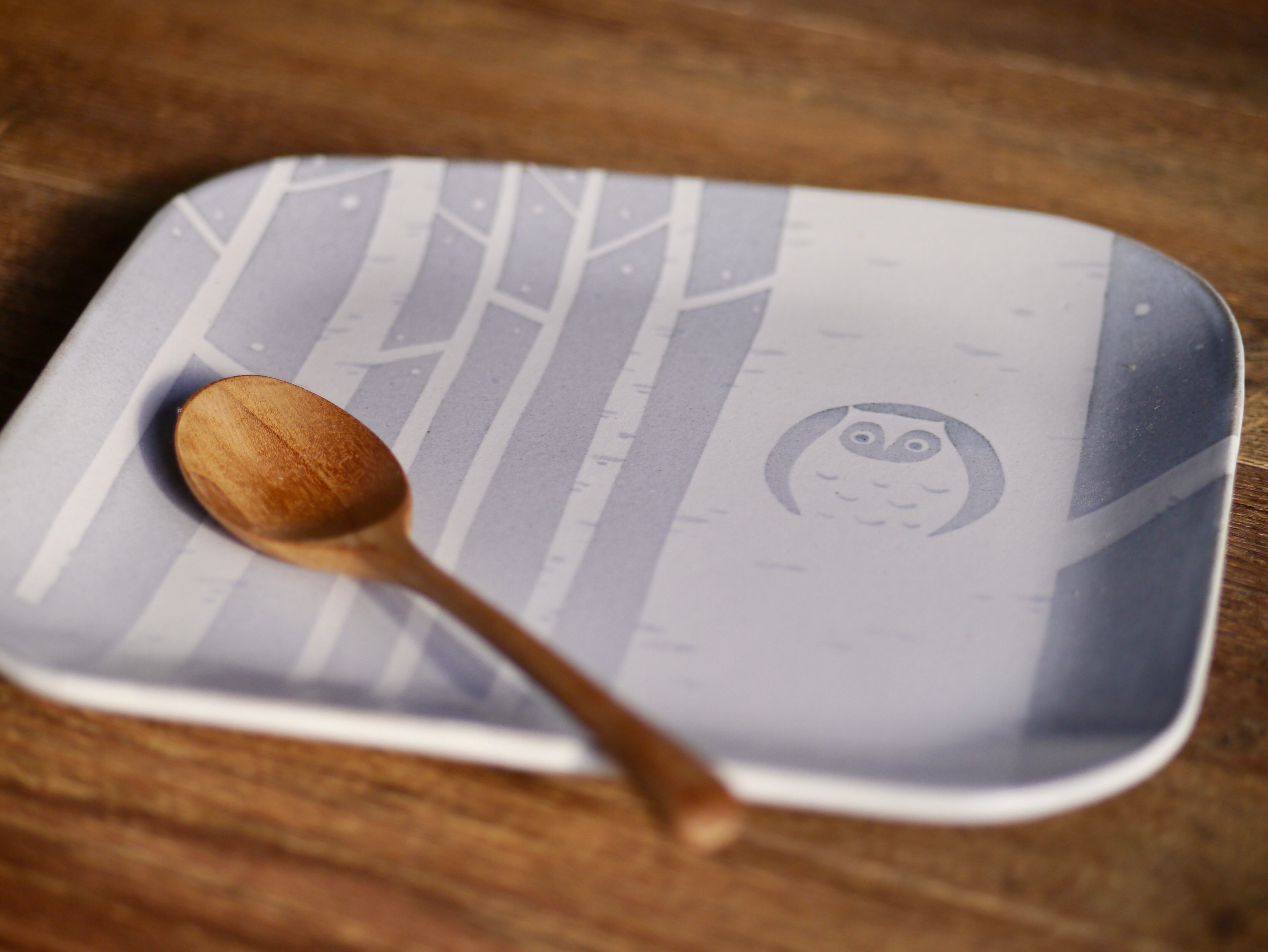 モノトーンの絵付け皿で、載せるお料理を問わず引き立たせます。