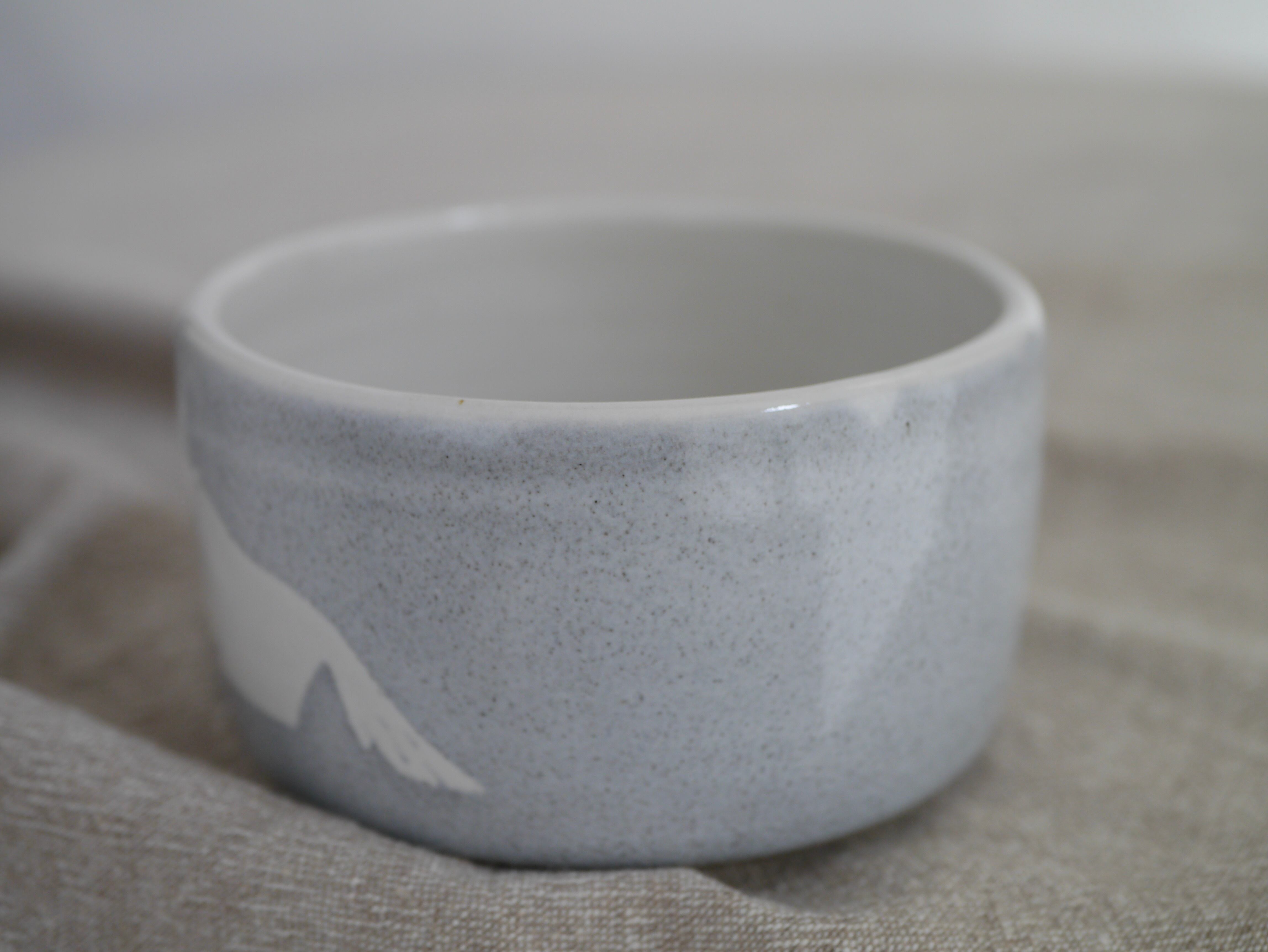 すこしとぼけた表情のオオカミの絵柄のスープカップです。